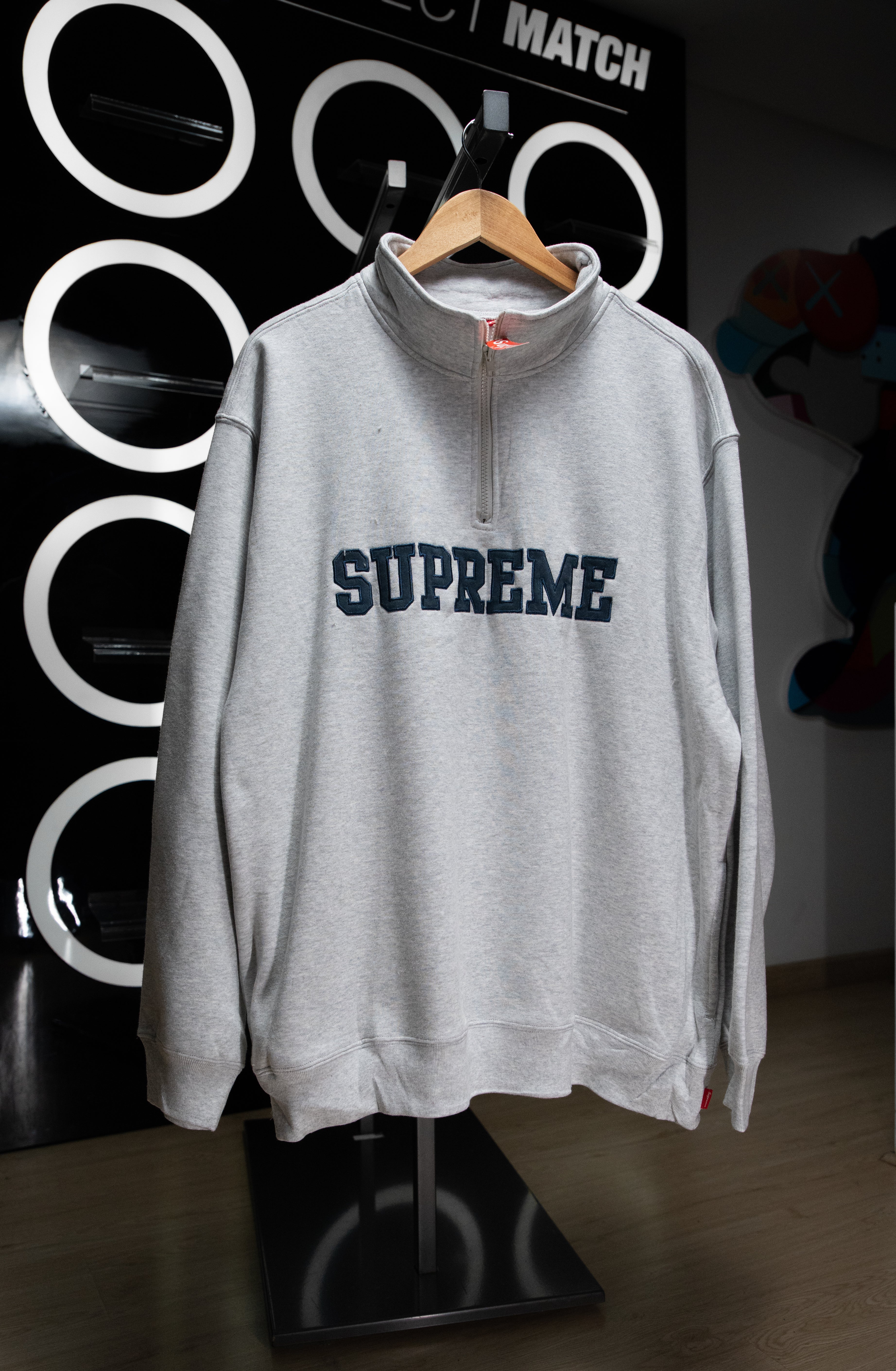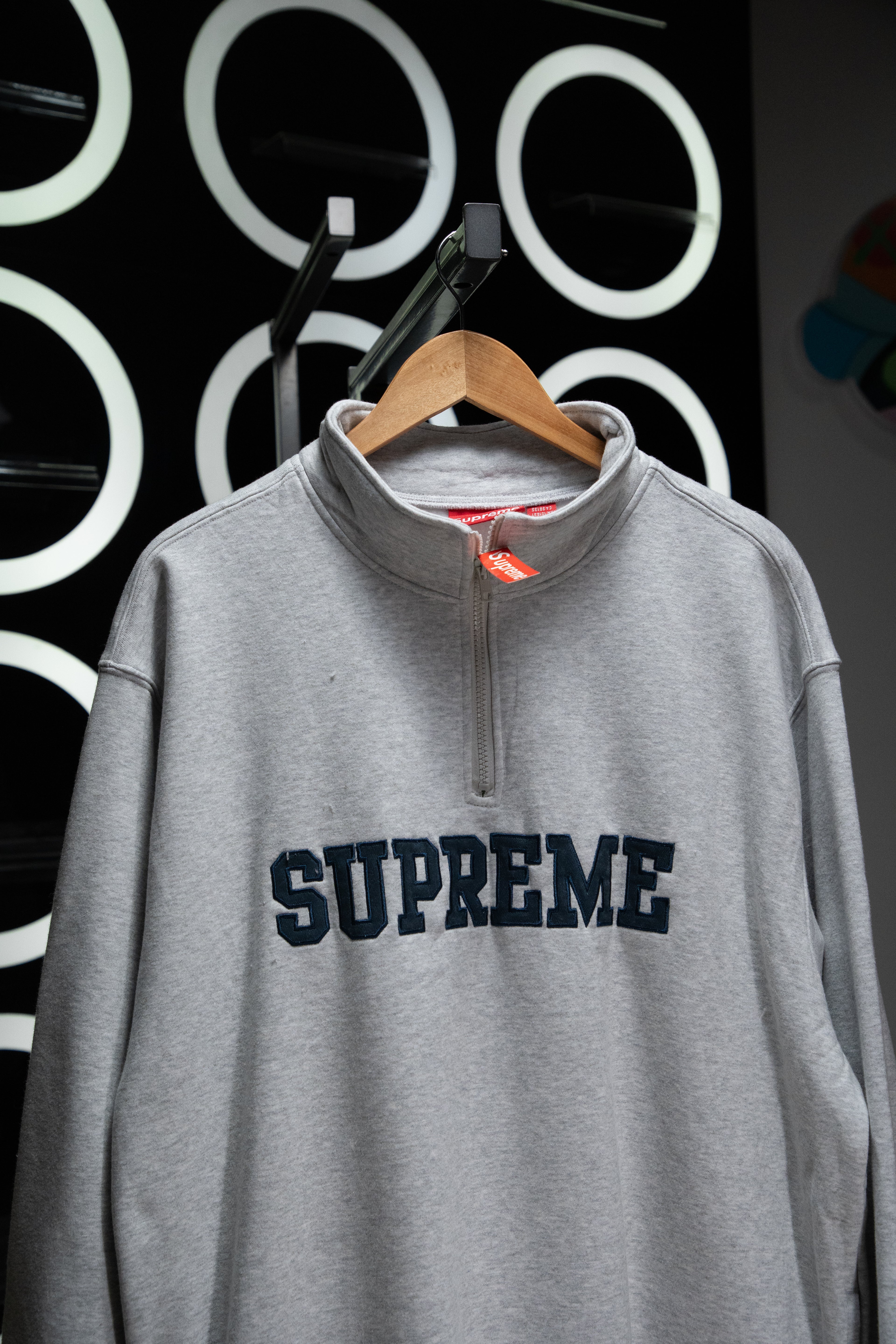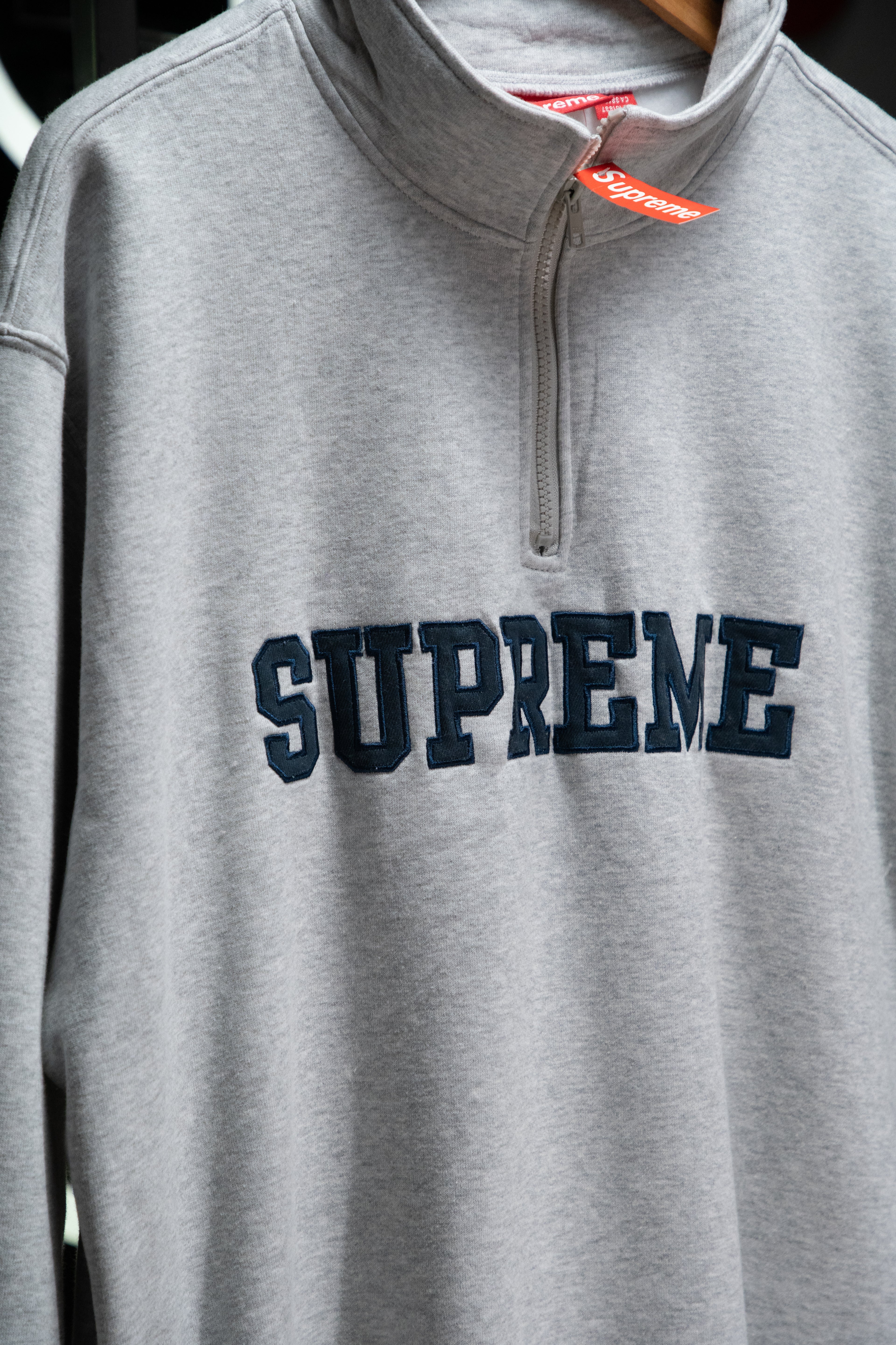 Crewneck supreme collegiate half zip pullover grey
