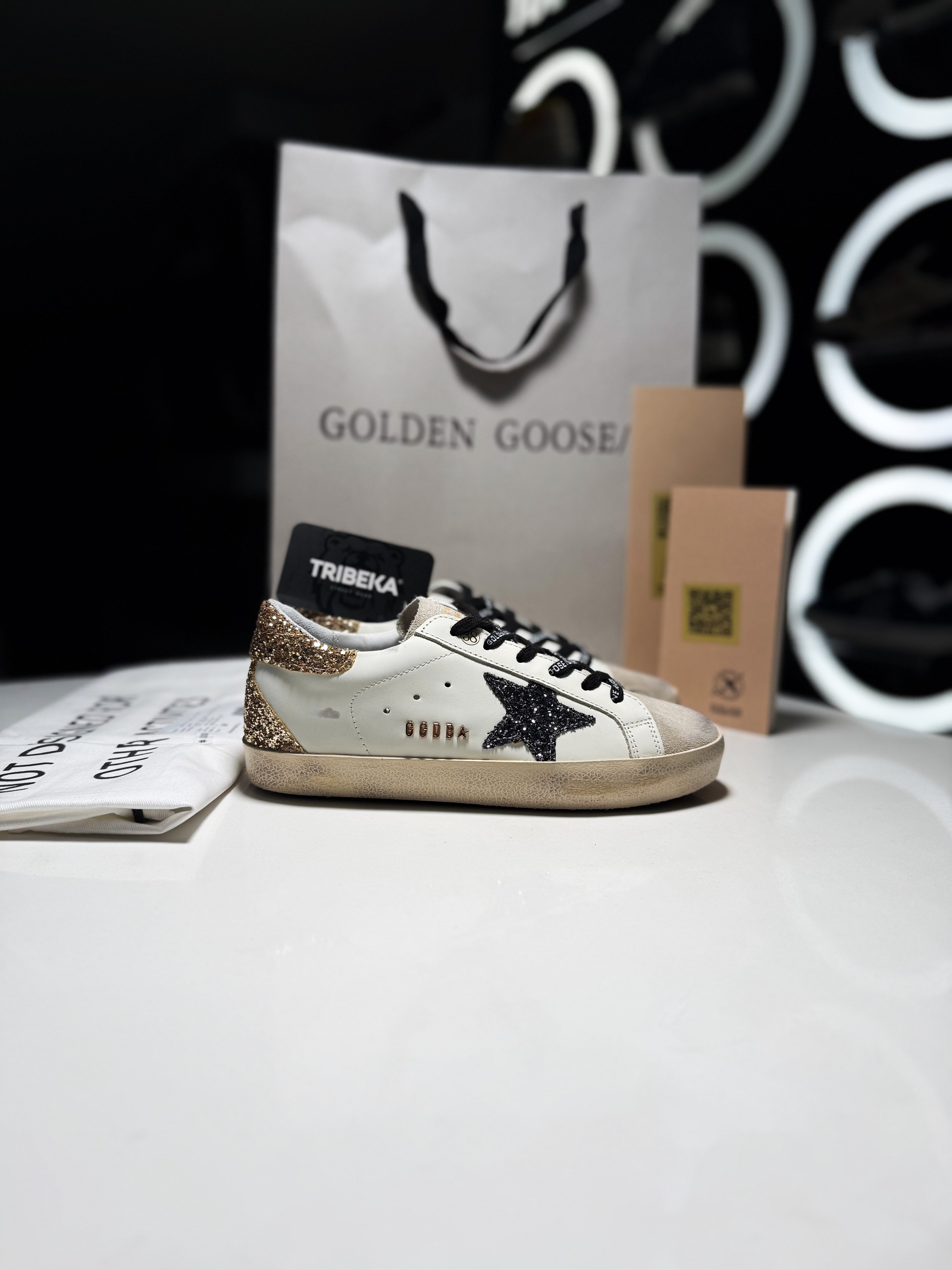 GOLDEN GOOSE SSTAR GOLD BLACK SHINE