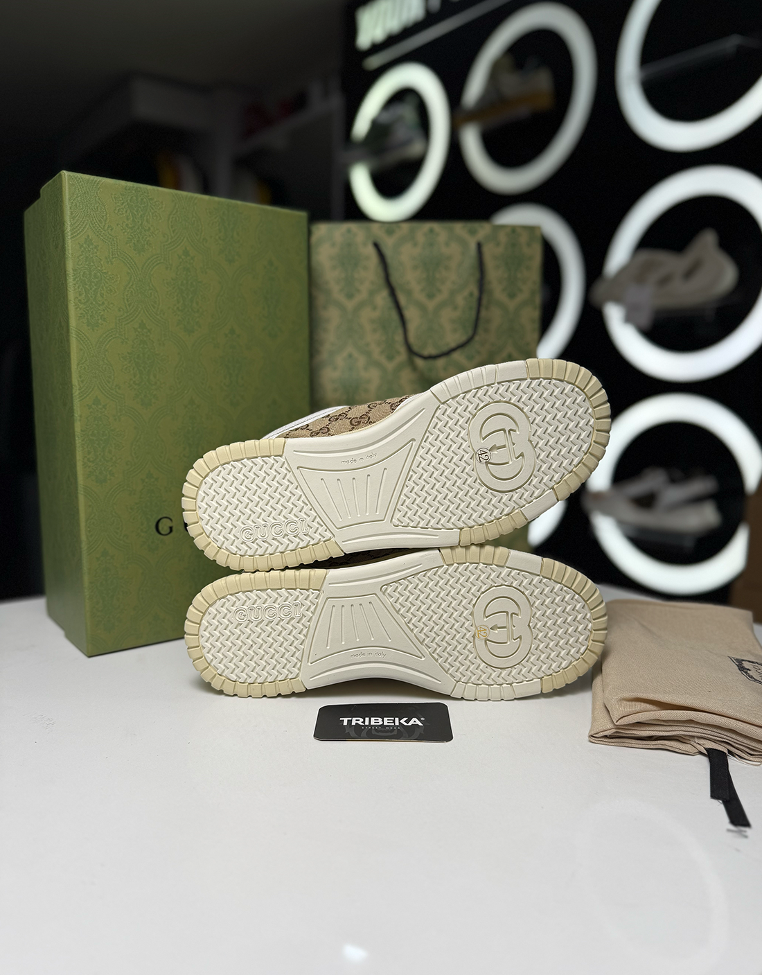 - Suela exterior de goma con GG entrelazada y logotipo Gucci