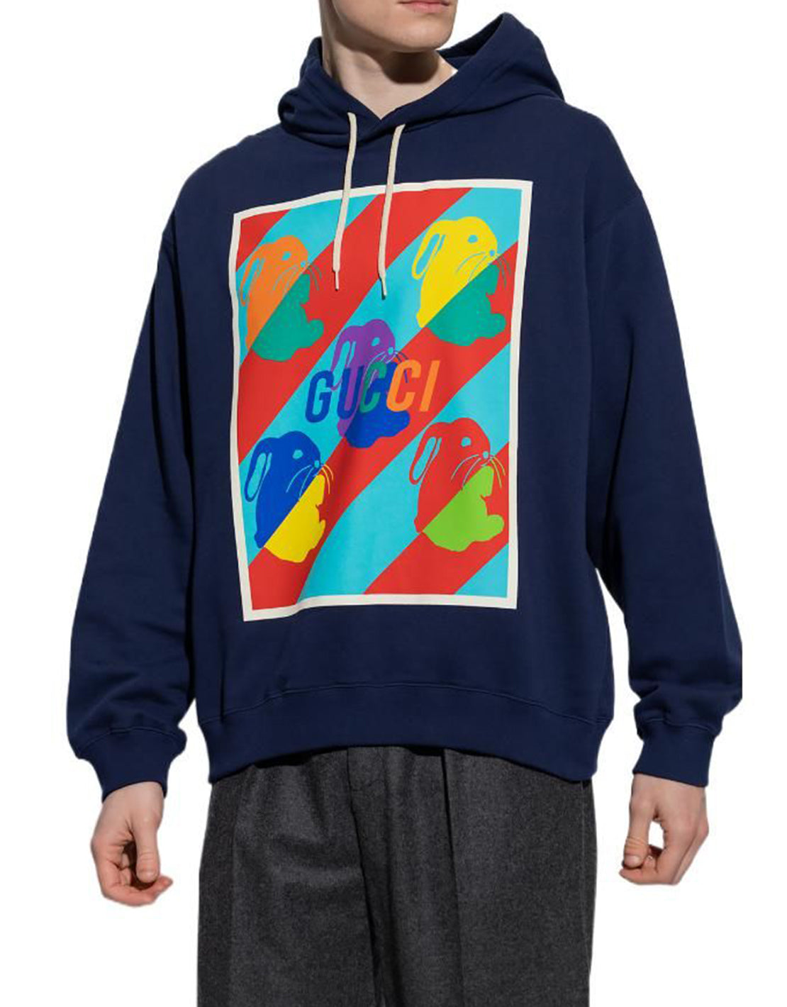 HOODIE GUCCI RABBIT PRINT AZUL